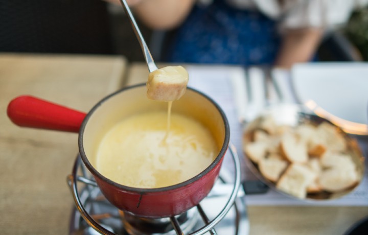 Behalve naar Het Zwitserleven Gevoel was ik deze zomer in het Zwitserse voortdurend op zoek naar de echte Zwitserse kaasfondue. Omdat ik daar zin in had. Maar overal werd ik uitgelachen, “Kasefondue gibt es nur im Winter!” Voor noodgevallen had ik gelukkig twee repen donkere chocolade van een verantwoord merk, bij me. Voor je weet maar nooit!